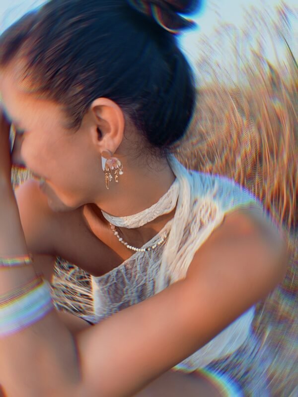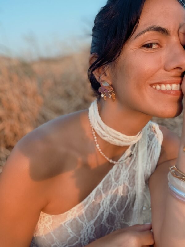 Every Nómada piece of jewelry is completely handcrafted by me in my atelier. I carefully select natural semiprecious stones and hypoallergenic metals while I’m making my own shapes and patterns by polymer clay. Each piece is unique with no cutters used and may slightly vary. All Nómada jewelry is delivered in a paper box to ensure a long lifetime.